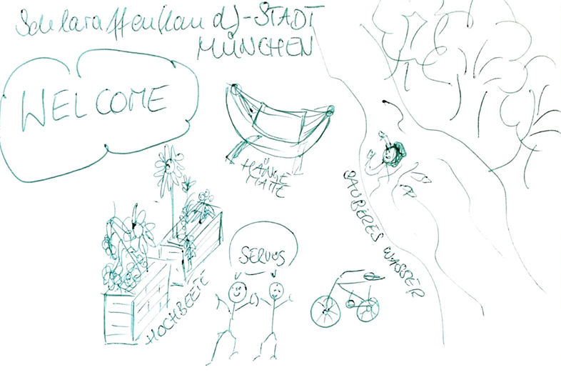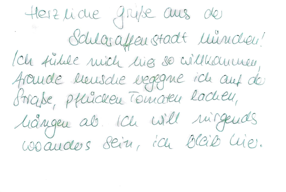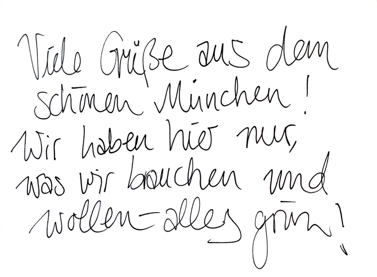 Zum Abschluss haben wir eine Postkarte aus der Zukunft an unseren Lieblingsmenschen entworfen. Diese soll zeigen, wie München 2030 aussieht, wenn das Wirken des MIN-Bündnisses Früchte getragen hat.