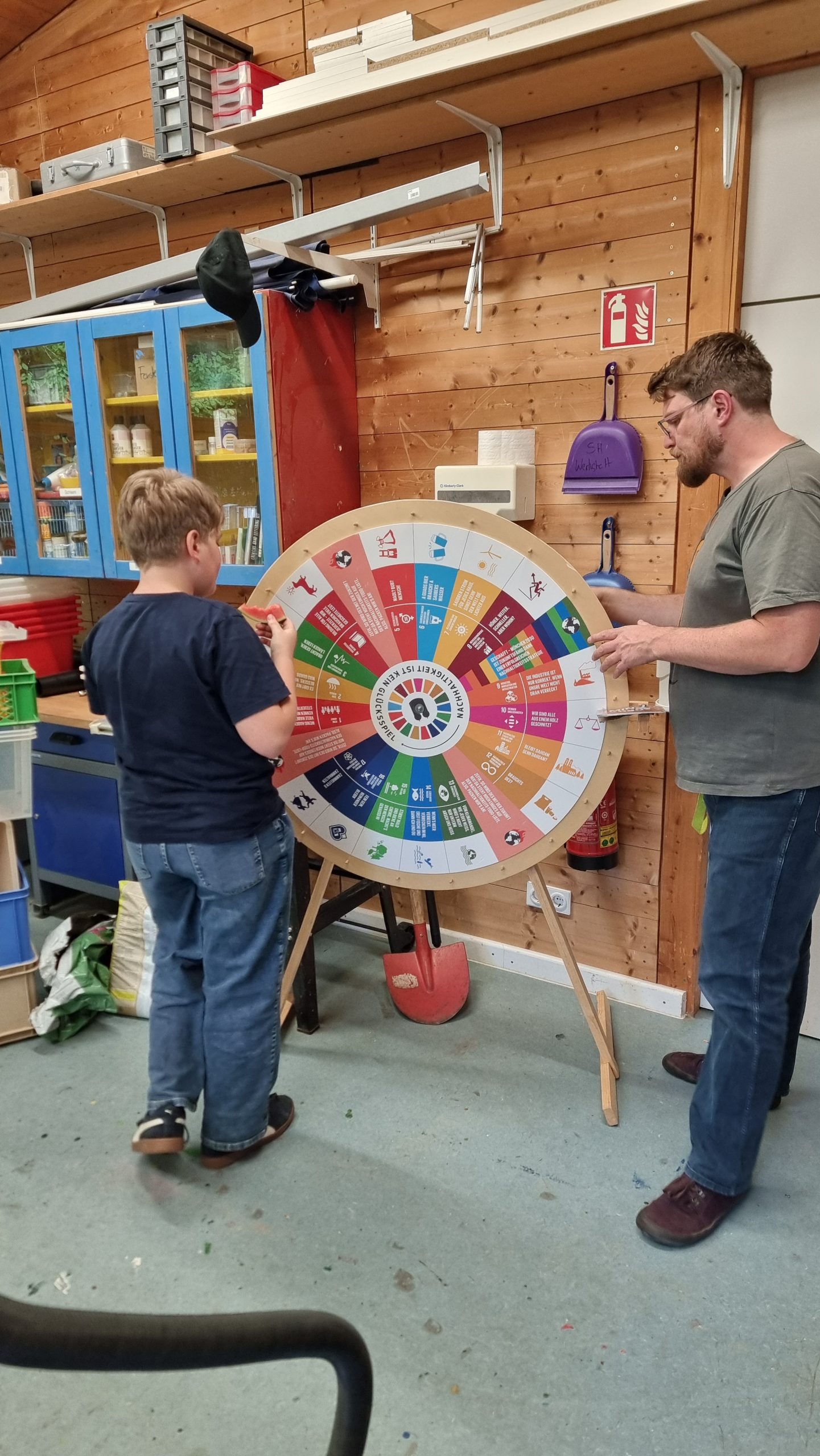 Jetzt bekommt das Glücksrad eine neue Scheibe – speziell für Kinder. Klingt erstmal nach einer Kleinigkeit, ist aber das Ergebnis viel kreativer Projektarbeit mit Kindern.