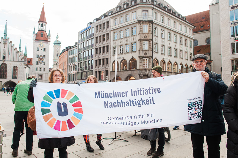 Das Bündnis will mehr als schöne (KI-)Bilder, die auf dem Platz ausgestellt wurden. Es fordert, dass Klimaschutz und Nachhaltigkeit im Sinne der SDGs in München wieder Priorität bekommen. Bei den kommenden Kommunalwahlen. Und danach. Mit einem symbolischen Stadtwald hat „Stadt für Alle“ seine Forderungen für ein soziales, klimagerechtes und lebenswertes München an die Stadtpolitik übergeben. „Wir sind viele. Wir sind eine starke Stimme. Wir werden etwas bewegen“, betonte Felicia Rief von MIN.