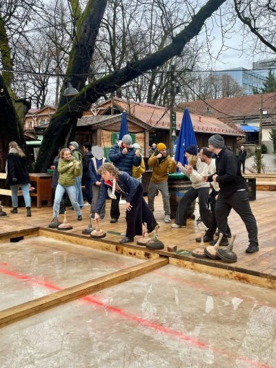 Vor allem in der hektischen Weihnachtszeit darf der Zusammenhalt nicht zu kurz kommen. Deswegen fand letzten Montag unser sehr ereignisreicher Teambuilding-Tag statt. Gestartet haben wir zusammen mit dem Klimaherbst bei uns im Büro mit der Reflektions-Methode Start-Stop-Continue. Danach ging es für uns alle zum Eisstockschießen. Das Klimaherbst-Team konnte sich nach einem spannenden Match am Ende als Sieger behaupten, bei dem Alle viel Spaß hatten. Als nächstes haben wir noch in Zweiergruppen unsere Arbeit reflektiert und den Nachmittag mit lustigen Spielen verbracht.